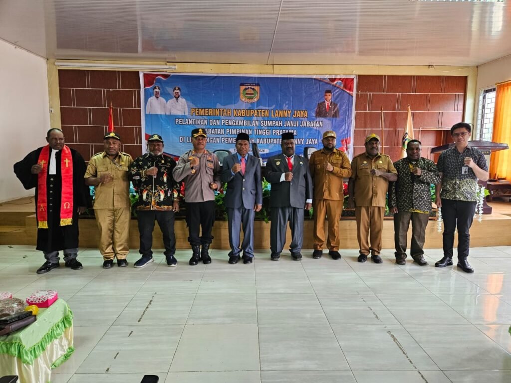 Lanny Jaya – Bupati Lanny Jaya, Aletinus Yigibalom, secara resmi melantik Saiman Yigibalom, SE sebagai Kepala Dinas Pendidikan Kabupaten Lanny Jaya. Prosesi pelantikan berlangsung penuh khidmat di Aula Kantor Bupati Lanny Jaya, disaksikan oleh Wakil Bupati Fredi Ginia Tabuni, Wakil Ketua II DPR Papua Pegunungan Terius Yigibalom, SH serta sejumlah pimpinan OPD di lingkungan Pemerintah Kabupaten Lanny Jaya.